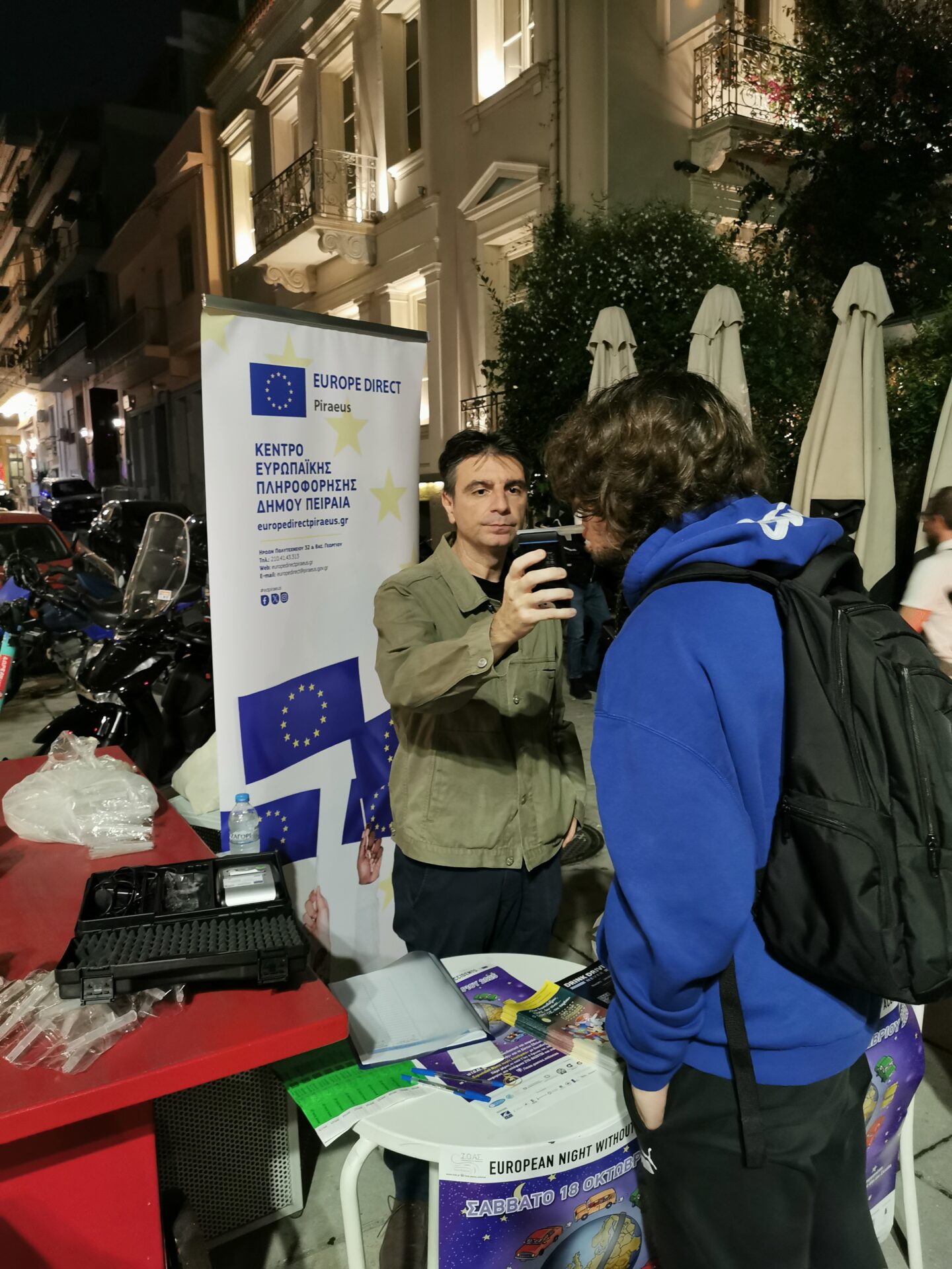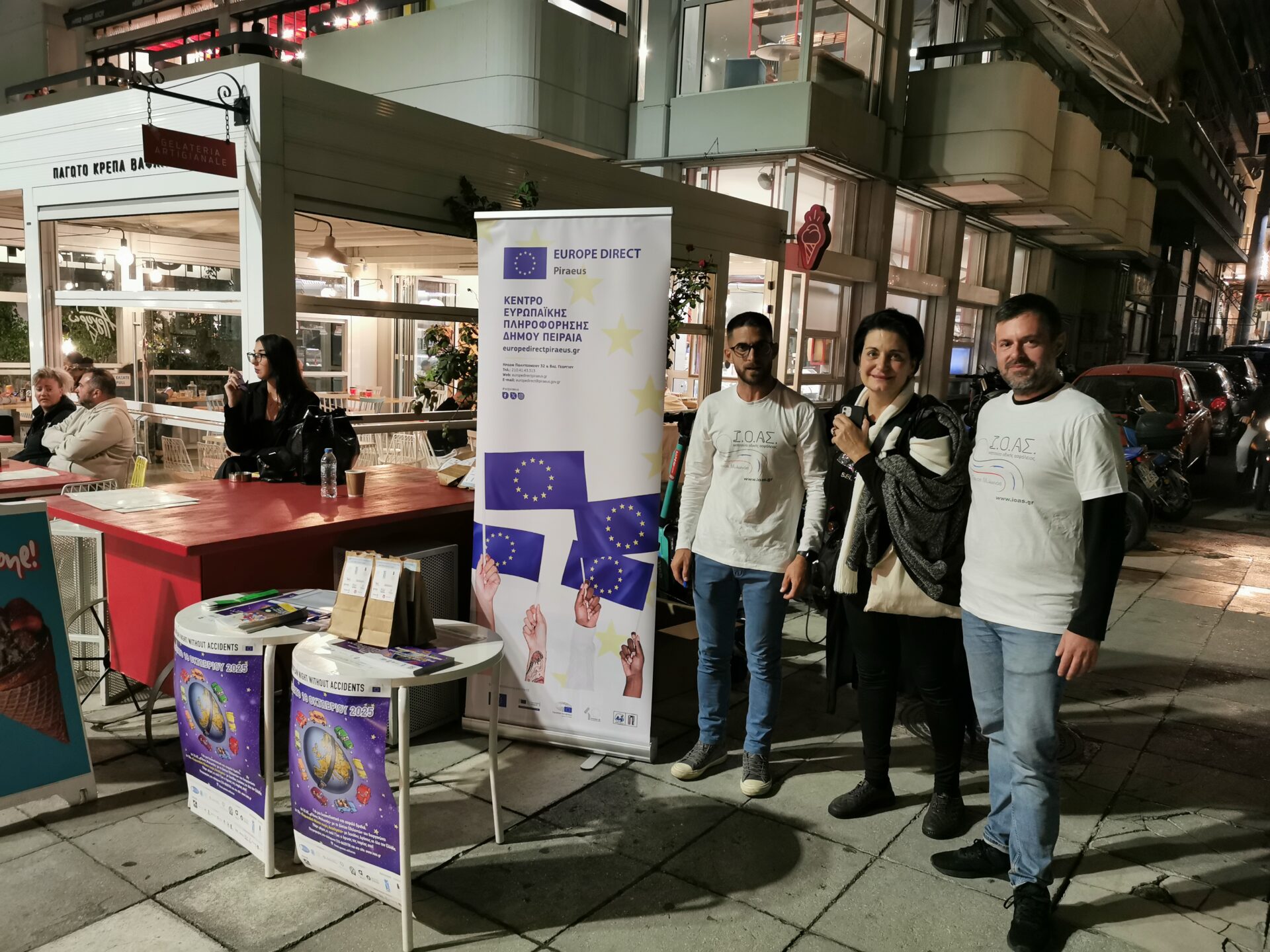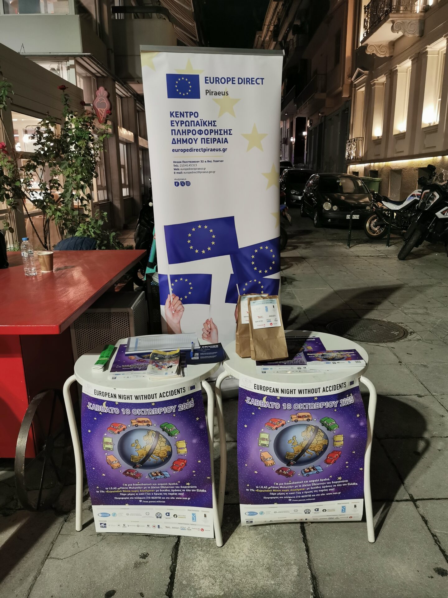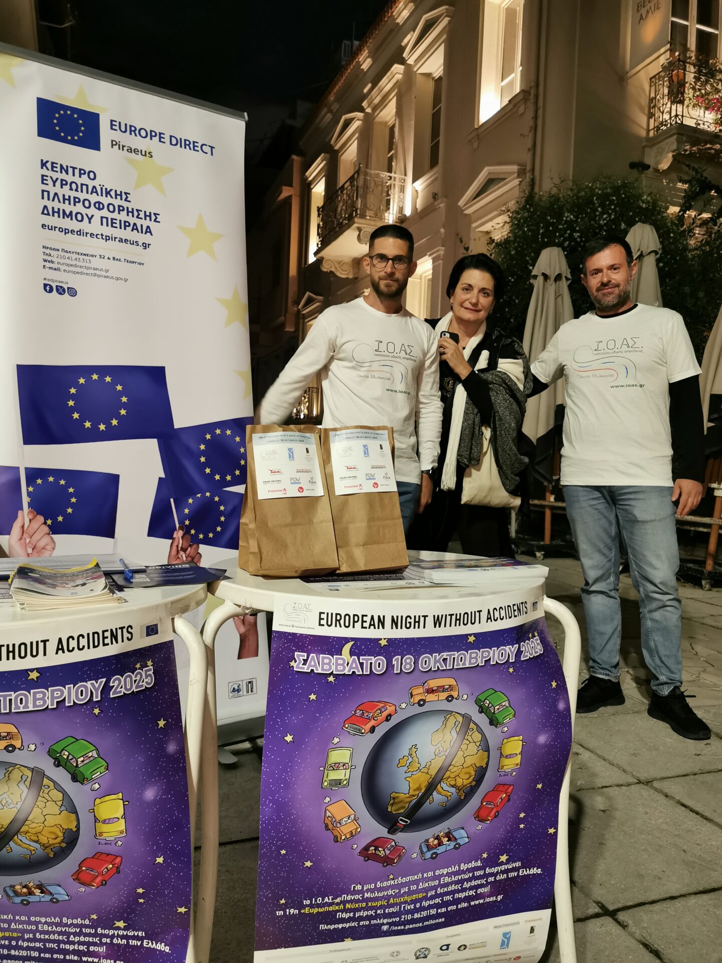 Το Κέντρο Ευρωπαϊκής Πληροφόρησης Δήμου Πειραιά συμμετείχε στη δράση ευαισθητοποίησης «Ευρωπαϊκή Νύχτα χωρίς Ατυχήματα», που διοργανώθηκε από το Ινστιτούτο Οδικής Ασφάλειας (Ι.Ο.ΑΣ.) «Πάνος Μυλωνάς» για 19η συνεχή χρονιά το Σάββατο 18 Οκτωβρίου σε δεκάδες πόλεις σε όλη την Ελλάδα, μεταξύ αυτών και στον Πειραιά.